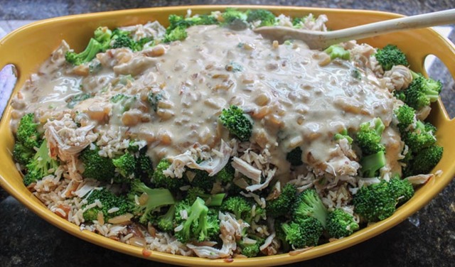 Domestocrat’s Cheesy Broccoli, Chicken, and Rice (makes 10 servings)