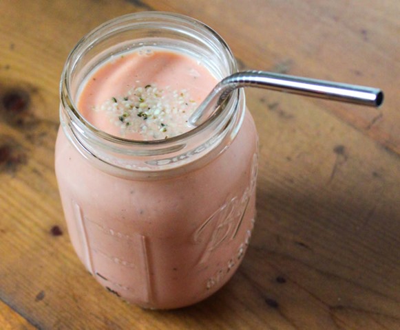 Blend until the mixture is smooth. Drink immediately with a fun straw and some extra Hemp Hearts sprinkled on the top.