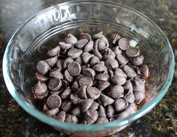 In a microwave safe dish, nuke the dark chocolate chips for 30 seconds. Give the chips a stir, gauge how melty they are, and re-nuke if you need to (mine needed about 25 more seconds). Stir until the chips have melted and the chocolate is smooth.