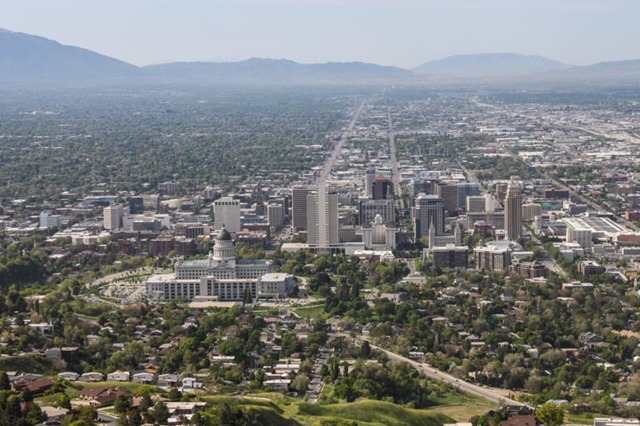 The prominent capital building from Ensign Peak: (which is exactly a mile south of the trail)