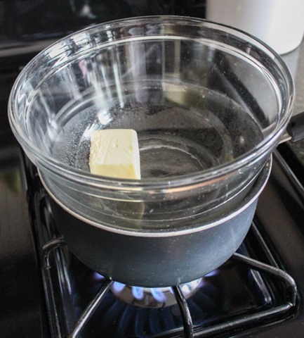Once the ingredients are prepped, it’s time to begin! Start by melting the butter over a double boiler. When the butter is melted, add the chocolate.
