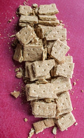7 graham cracker sheets – 6 chopped, 1 pulverized into crumbs
