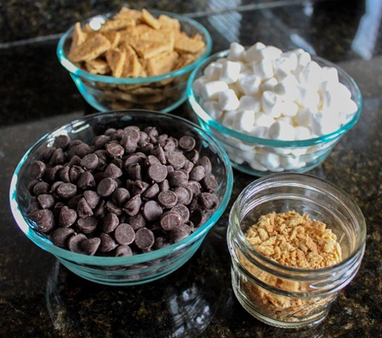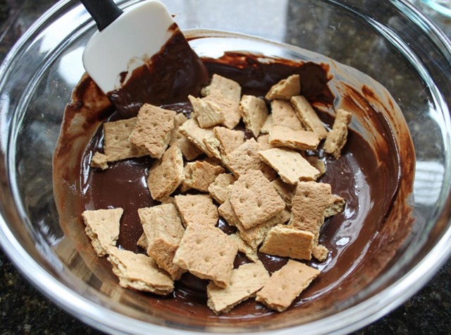Carefully, stir in the chopped graham crackers and the ‘mallows.