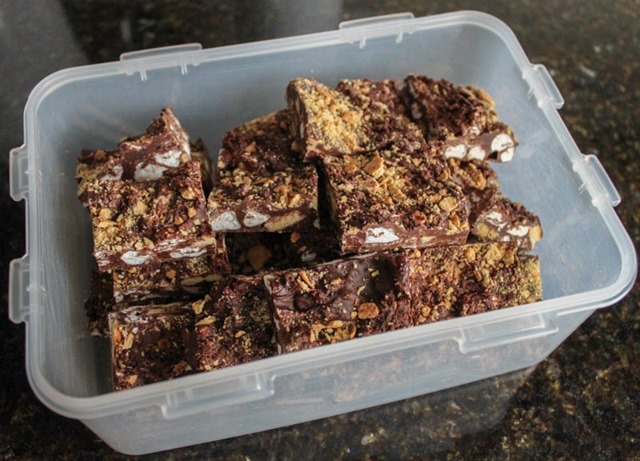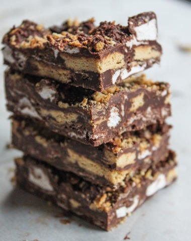 When the chocolate has completely hardened, cut into squares and enjoy! This recipe has the perfect ratio of chocolate to graham to marshmallow, which is how a good S’more should be.