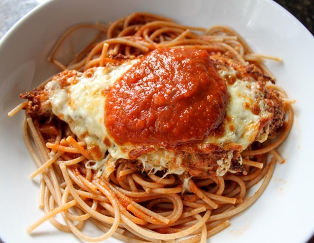 Whatever else you enjoy your parm with – marinara sauce, pasta, garlic bread, etc.