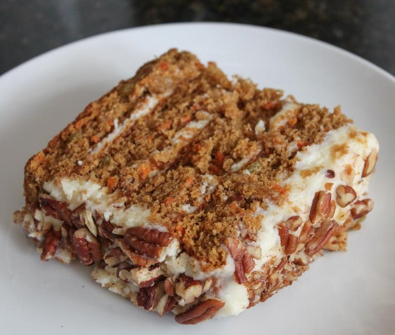 I make carrot cake once a year for John’s birthday. Every year I research for weeks to try and find the best possible recipe for his precious birthday treat. This year I happened to catch America’s Test Kitchen’s Great American Classics episode, which featured the following carrot cake, just before John’s birthday. What a lucky break! This is the recipe to end them all; it’s perfect.