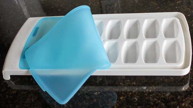 The silicone lid prevents spills in the freezer. Our freezer is small and always packed so I am happy to finally have an ice cube tray I can stash at an angle.