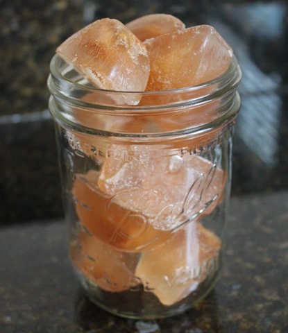 On to the latte! To make one serving start by putting 5 chai ice cubes in a glass. Pour in one cup of brewed chai tea and then about 1/4 cup of milk. Feel free to use your own preferred ratios here – this is what I like for a slightly sweet, slightly light latte that is still strong on tea flavor.