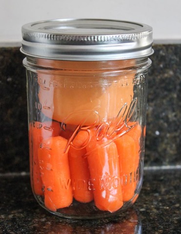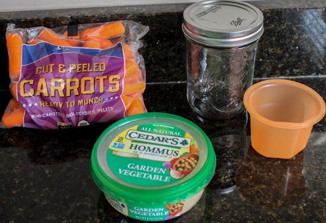 For this application I had baby carrots and Cedar’s Garden Vegetable hummus. What I really wanted to show you was my favorite way to store/transport this snack. I am currently in love with my wide mouth mason jar and Cuppow BNTO Lunchbox Adapter.