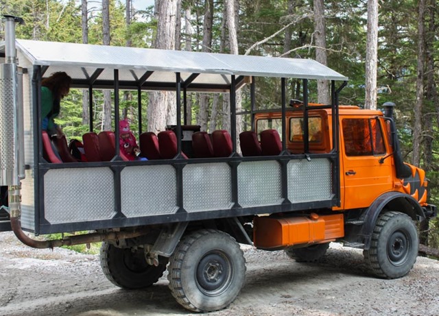 To get up to the sled dog camp we had to get off the bus at their base camp and load on to this refurbished German unimog military truck. The camp owns a few to traverse the steep and rocky terrain to and from the camp (which is about one mile, straight up, from the base camp).