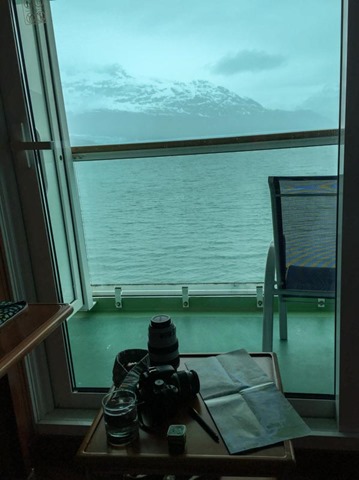 The reason this particular weather wasn’t welcome on Day 5 was because this was our one full day on the ship, cruising through Glacier Bay National Park. Nonetheless I was ready in our room to view the park from our balcony. There were viewing areas all over the ship but I preferred to view from the comfort of our room – that’s half the reason why we had a balcony after all! Also, I should note, there are no roads that lead directly to Glacier Bay so if you’re a National Park nut like we are, you’ll need to visit by boat or plane.