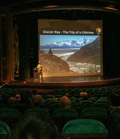 When the guided tour was over John and I got lunch. At 1PM Ranger John gave a presentation in the amphitheater about Glacier Bay, its history, and its future which was wonderful. He spoke for an hour on the native Tlingit people of the region, the flora and fauna of Glacier Bay, the oceanography of the area, and climate change impacting Glacier Bay.