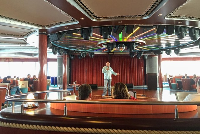 Later in the afternoon we went to a comedy workshop in Spinnaker Lounge with resident comedian, Tim Kaminski. Tim is old school, mentored by Jonathan Winters and Del Close. John’s obviously a seasoned performer from his years at Improv Boston, and has taught me a lot about comedy, but Tim’s a lifer in the industry and his perspective was super interesting.