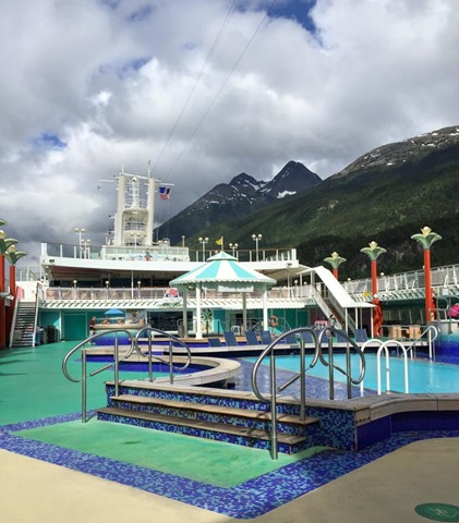 The pool was located on deck 12 and was an awesome place to people watch while being outside and enjoying the scenery. We didn’t go in the pool (too cold outside!) but there were kids in it all the time.