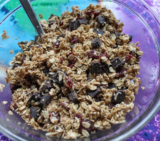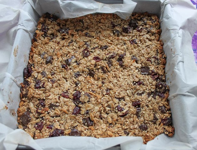 Dark Chocolate an Cranberry Granola Bars (adapted from Smitten Kitchen, makes 8 bars)