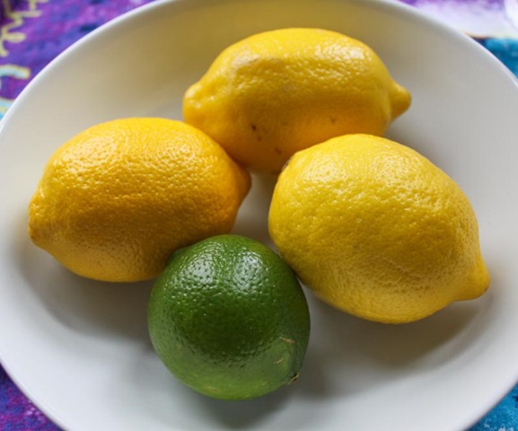 When the tea has finished steeping, the simple syrup has cooled, and the citrus has been juiced, gather all of the ingredients together. Pour the lemon/lime juice into the pitcher and top off with ice.