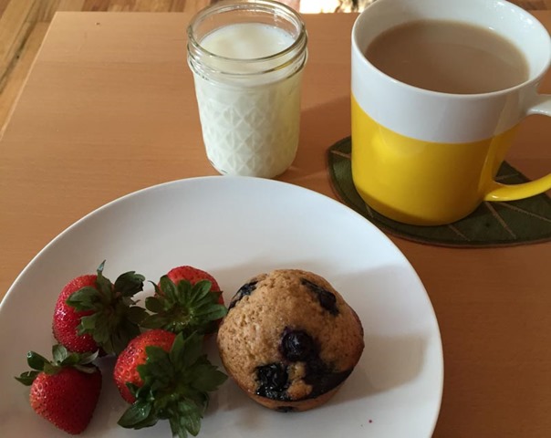 Fun fact about me: I don’t really like breakfast food. I don’t enjoy a heavy breakfast, it loads me down for the entire day! So breakfast for me, no matter where I eat it, is usually pretty light. No omelets, pancakes, waffles, or breakfast sandwiches here. Just thinking about it makes me want to hork. I always have fruit and tea with my breakfast (it wouldn’t feel the same without it!), so you’ll notice that below.