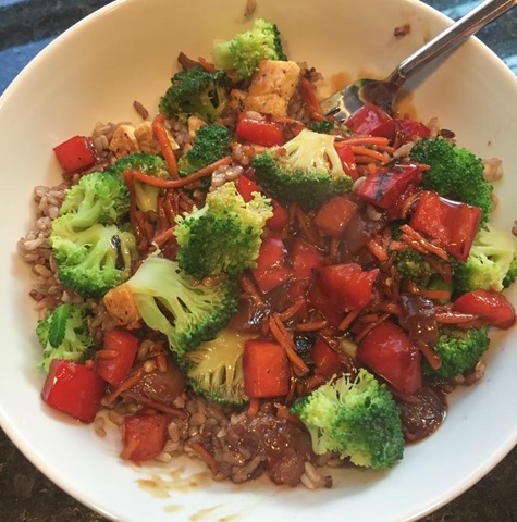 Stir fry: Stir fry is a once-a-month dinner for us. I really dig how many veggies you can cram into stir fry without it being overkill. I prefer stir fry over soba or rice noodles but you can have it over any kind of rice too. I usually top it with just soy sauce but when I have the time I really like to make a sweet and spicy sauce.