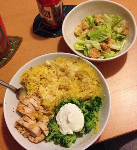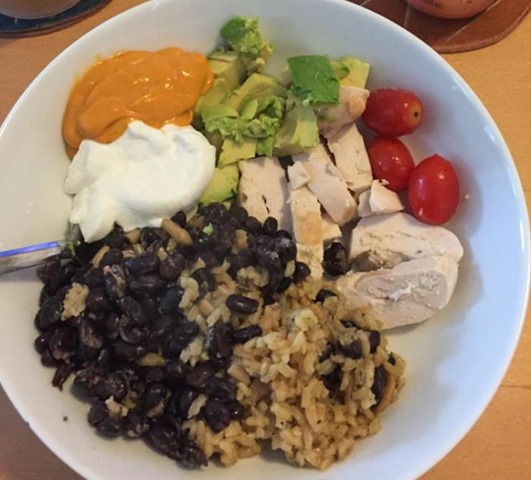 Bowls: I’m a big fan of random bowls full of goodness for dinner. From L to R – 1: freezer burrito and beans over salad, 2: sausage and butternut squash over wild rice and kale, and 3: chicken, black beans, and rice with avocado, tomato, greek yogurt, and queso.