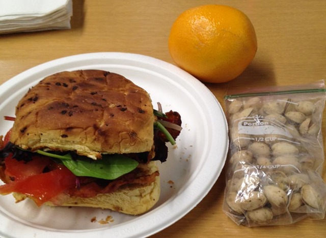 Sandwiches: A classic with endless options. I love turkey and cheese, BLTs, tuna, and peanut butter and jelly. I’m trying to get away from double carbing (which you’ll see a bunch of here – e.g. chips + sandwich, pretzels + sandwich, etc) and have more salad, nuts, veggies, and fruit on the side instead.
