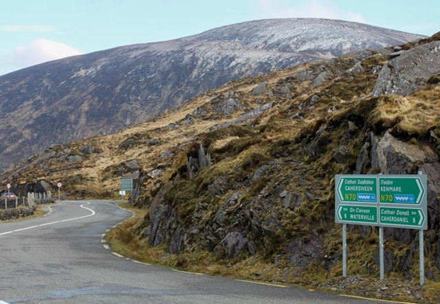 Between Sneem and Kenmare, going now west to east, the landscape became more rocky, less green, and dipped into deep valleys.