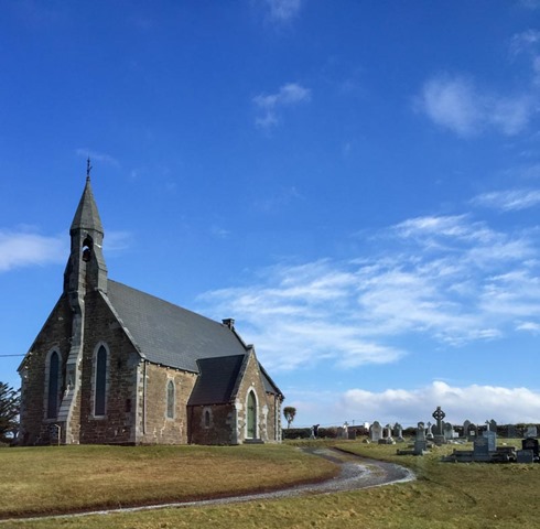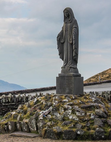 Onward we went. We were able to see the Skellig Islands out in the Atlantic Ocean (right photo, two islands in the background). The sculpture (left) is called “To the Skellig,” and depicts four Monks taking a boat to the monastic island of Skellig Michael. The Skellig Islands are a UNESCO World Heritage Site, home to a 6th century monastery, a wildlife preserve, and is where the final scene of Star Wars: The Force Awakens was shot (on Skellig Michael, no big deal).