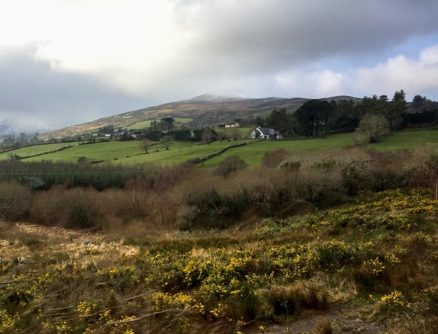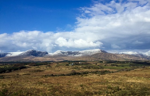 For the first hour of the bus ride we drove westward through fields and farms, and so many peat bogs. We had a great view of the snowy McGillicuddy’s Reeks range whole time.