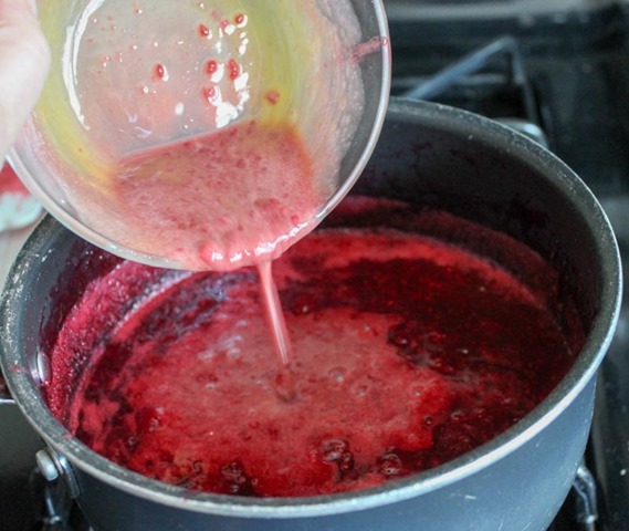 When the volume has doubled, pour the tempered eggs back into the pot with the rest of the raspberry mixture. Stir continuously over low heat until the mixture has fully thickened (2-3 minutes).