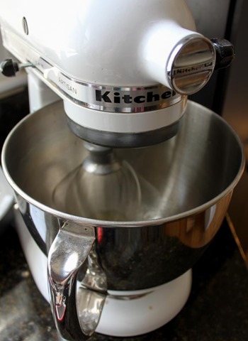 Now for the cake batter. In a big bowl mix the flour, sugar, baking powder, and salt. In a separate bowl mix together the oil, whole egg, vanilla, and water. Pour the wet team over the dry team, and stir to combine.