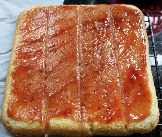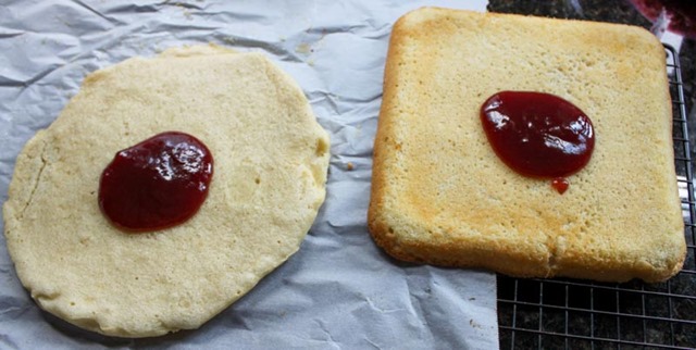 Now, for the jam! In a small bowl mix together the gelatin and fresh lemon juice, and set aside for a few minutes so it came come together. In another bowl, microwave the storebought jam until it is warm and runny. Stir in the gelatin until it is fully incorporated, and set aside to cool to room temperature.