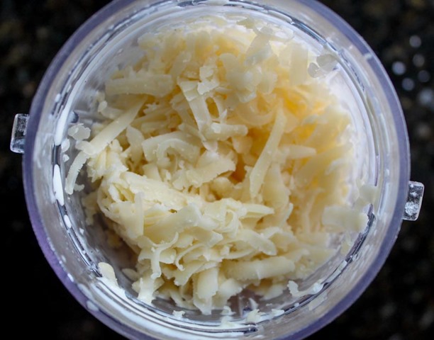 Shred the cheese if you can, it’s so much fresher and flavorful that way. Add the cheese to the blender and give 2-3 pulses. You want to incorporate the cheese without obliterating it.
