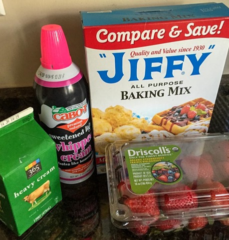 - 1 cup heavy cream (you can use a second cup to make homemade whipped cream to top the shortcake, or just buy the kind in a can like I did)