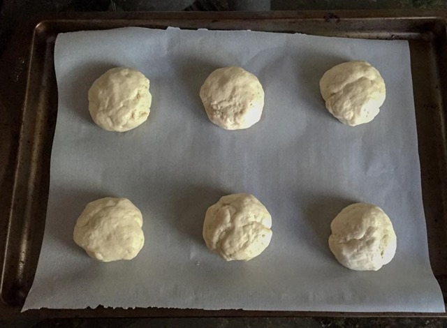 You can roll out the dough and use a biscuit cutter to get a more clean look. I like my shortcakes rustic so I just formed even-sized flattened discs with my hands (about 1/2 inch width). Place on a parchment paper lined baking sheet.