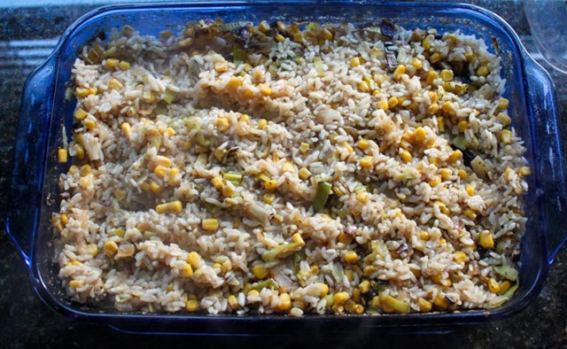 Baked Corn Risotto (makes 8 servings, adapted from Shutterbean’s Baked Corn & Tomato Risotto)