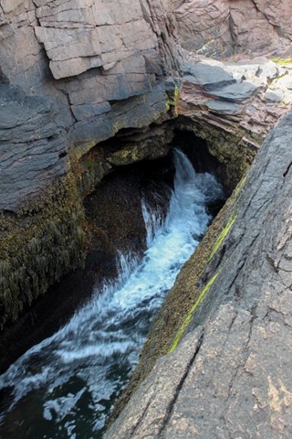 Our first stop in the park was at Thunder Hole – a small inlet where, when the waves crash inside, it makes a booming noise that sounds like thunder. We caught it at low tide which was still pretty cool. I definitely want to see it at high tide someday!