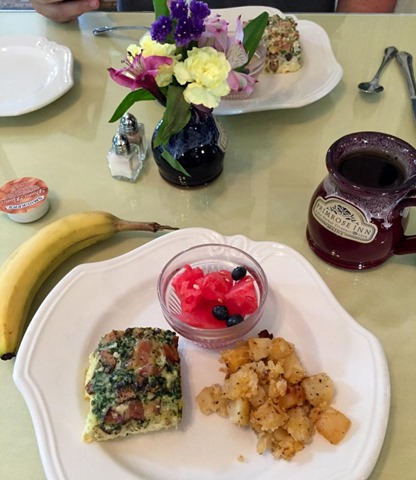 Our room was very cozy, the breakfasts every morning were delicious, the grounds were beautiful, and the staff was warm and welcoming. Sitting on the porch and enjoying the summer air was a major highlight.