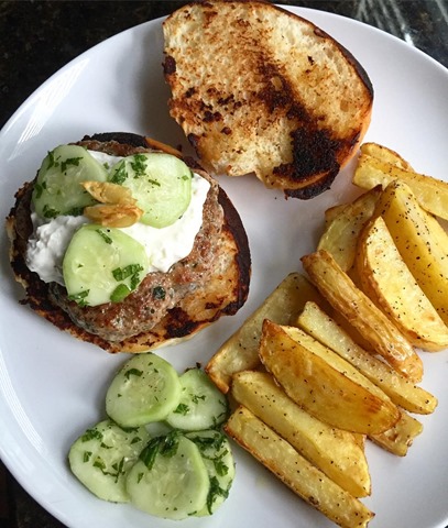 Another household favorite – burgers! We usually go for turkey burgers but chiken burgers and salmon burgers are awesome too. Good with a bun, without a bun. With salad, with chips, with chips and salsa, veggies and guac. You name it.