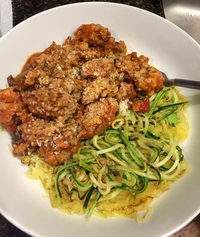 We love pasta and italian in our house. Some favorites this year have been zoodles with ground turkey and marinara and chicken parmesan. Also raviolis and salad!