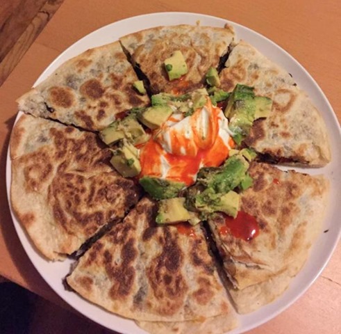We do a lot of variations on tacos, burritos, and quesadillas too. There’s a million ways to make them but my favorite ingredients are ground turkey, chicken, black beans, refried beans, butternut squash, spinach, shredded carrots, avocado, caramelized onions, greek yogurt, guacamole, and always cholula.