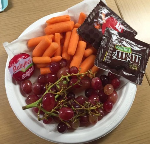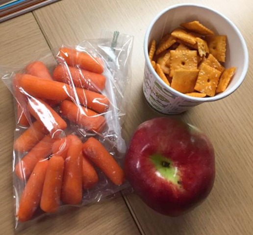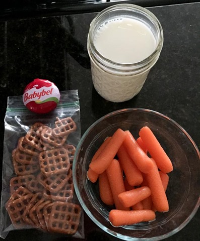 My go-to snacks are baby carrots (obvi), cheese, fruit, pretzels, nuts, and sometimes candy.