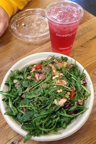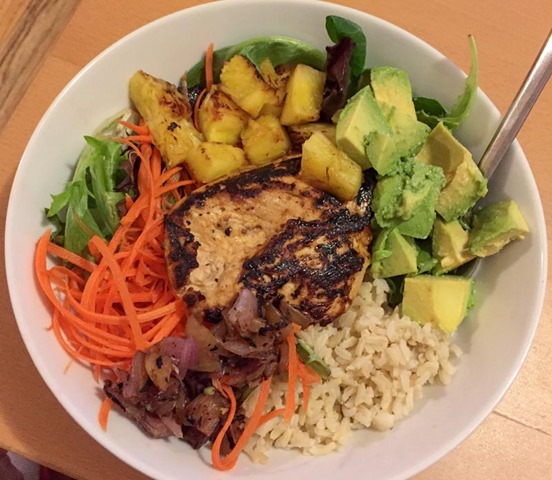 Harvest bowl from Sweetgreen, Fish tacos from Legal Seafood, The Adventurer bowl from Life Alive