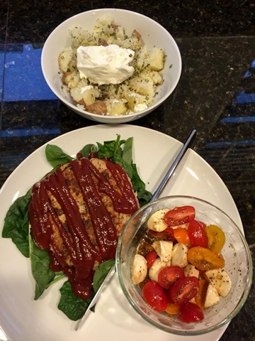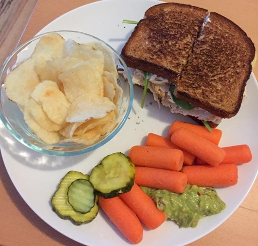 A few other random odds and ends that are always good dinner staples – fish with veggies, salad and a sandwich, and turkey tips with veggies.