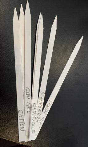 We were instructed to sniff each bottle we thought sounded appealing, and to not waste our nose on scents we knew we didn’t like. For a scent we truly loved, we dipped a piece of paper into the scent, wrote the name on the end of the stick, and set it aside. We were given and hour to smell everything, taking breaks occasionally to go outside or smell coffee beans to give our noses a rest.