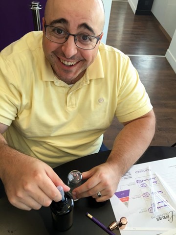 When we were done, our perfume expert used each paper stick to create a custom grouping of scents. She would add and subtract scents based on our feedback and was constantly swapping out one to two pieces of the paper to craft the best perfume combination. She carefully did this process for both John and I, waving the scent sticks in front of our noses, until we had a perfume that was perfect. When we each had the scents picked, our perfume expert wrote out the “recipe” for each of us. The recipe included each scent, which kind of note it was, and what volume of that note would go into the bottle.