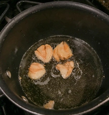 Over low heat, add the garlic and EVOO to a small pan. Cook together until the garlic has just started to brown. This took about 5 minutes for me but don’t take your eyes off of it! It burns so fast. Set aside to cool for 5-10 minutes.