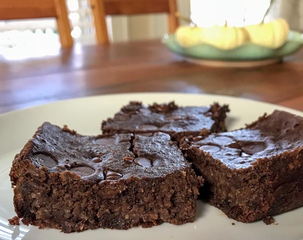 Nutritional information per brownie: 313 calories, 16 g fat, 6 g protein, 47 g carbs, 4 g fiber.