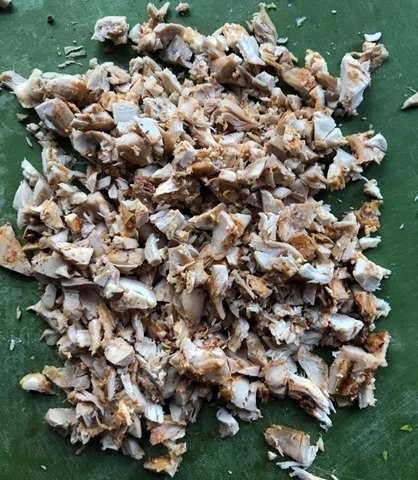 Finally, you can really use every last inch of a rotisserie chicken, even if it’s a tiny piece of meat or it’s a weird shape. I trim the whole bird, removing the larger pieces to eat for lunch or dinner, and then I take all the weird little pieces and chop up to go in the soup. They taste great and their shape/size really don’t matter at all!