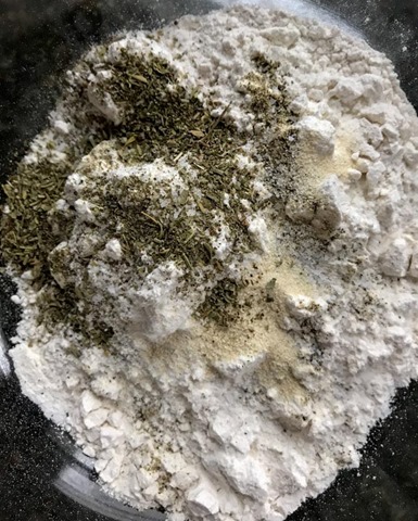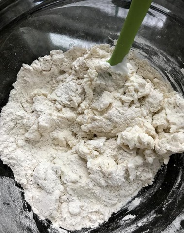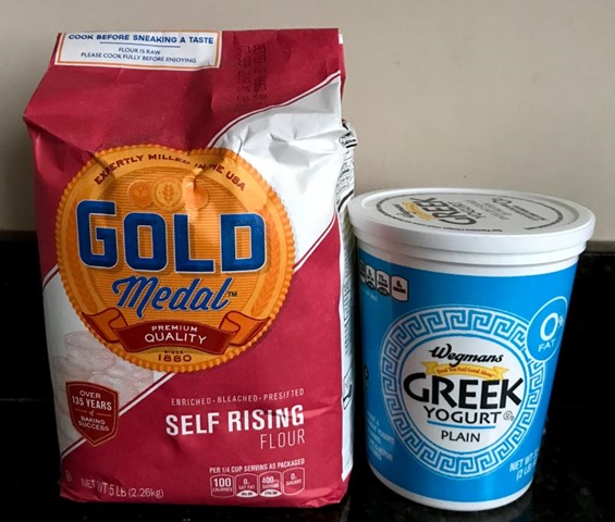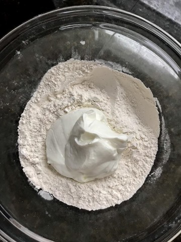 There are two steps in preparing the dough: 1) mix all of the dry ingredients together (flour + spices) and 2) then mix in the greek yogurt to form a dough ball. Towards the end of the mixing, I like to get my hands in there to make sure the dough is thoroughly combined.