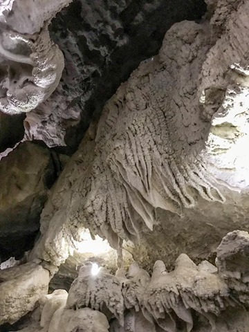 The caves are now primarily marble – though they weren’t always. The parent rock was originally limestone and was part of a tectonic plate beneath the Pacific Ocean. As the oceanic crust and North American tectonic plate grew, the limestone was subject to heat and pressure such that it metamorphosed to marble. Further tectonic movements eventually lifted the marble to above sea level where it sits here.