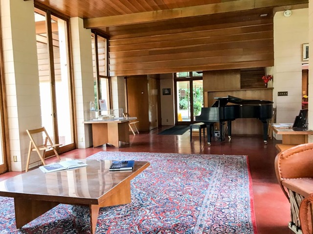 The house features Wright’s classic horizontal designs and a distinct connection between the outdoor and indoor spaces that is amplified by the floor to ceiling windows in almost every single room.